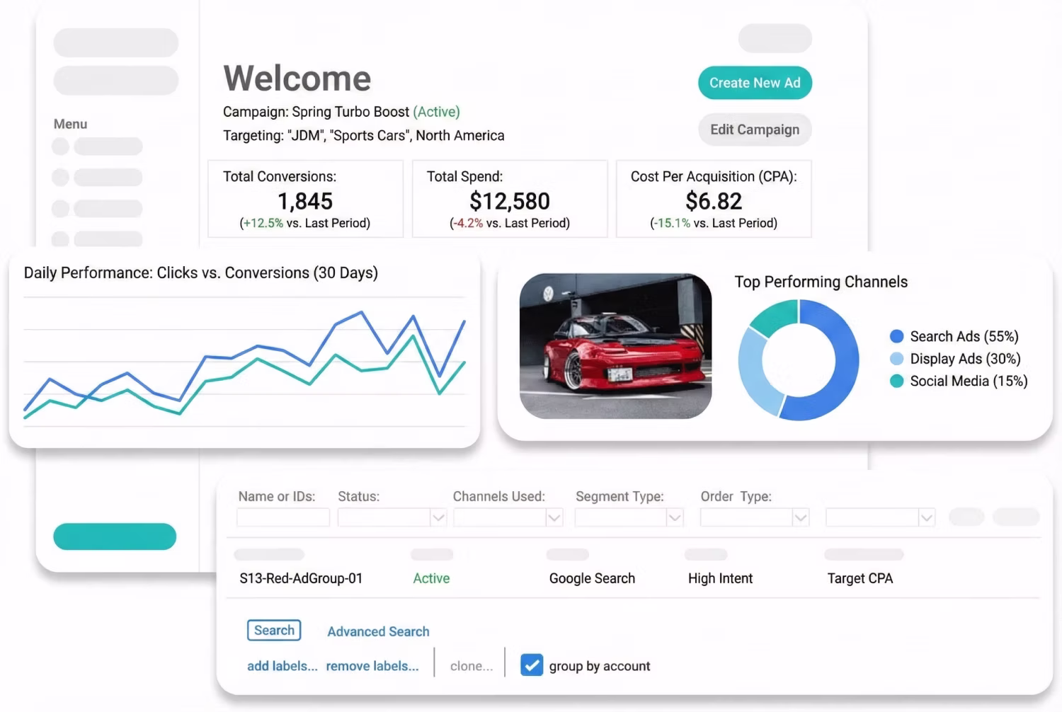 Grow your automotive business with a custom media and ads campaign for search, social, and display. Our team will create a monthly stream of content that helps build your brand.